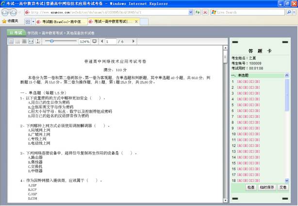 可以注冊登錄后考試,自動保存答卷和成績供隨時查閱;